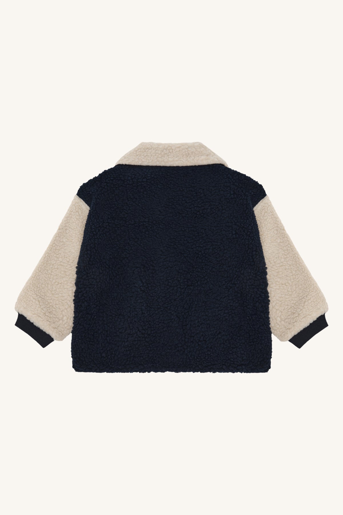 Jakke i blød, genanvendt teddyfleece med kontrastfarvede detaljer. Modellen har gennemgående lynlås med lædertræk, to praktiske lommer foran samt en dekorativ patch på brystet. Fås i regular fit og er perfekt som overgangsjakke til forår og efterår eller som ekstra lag under regntøjet på kolde dage.
